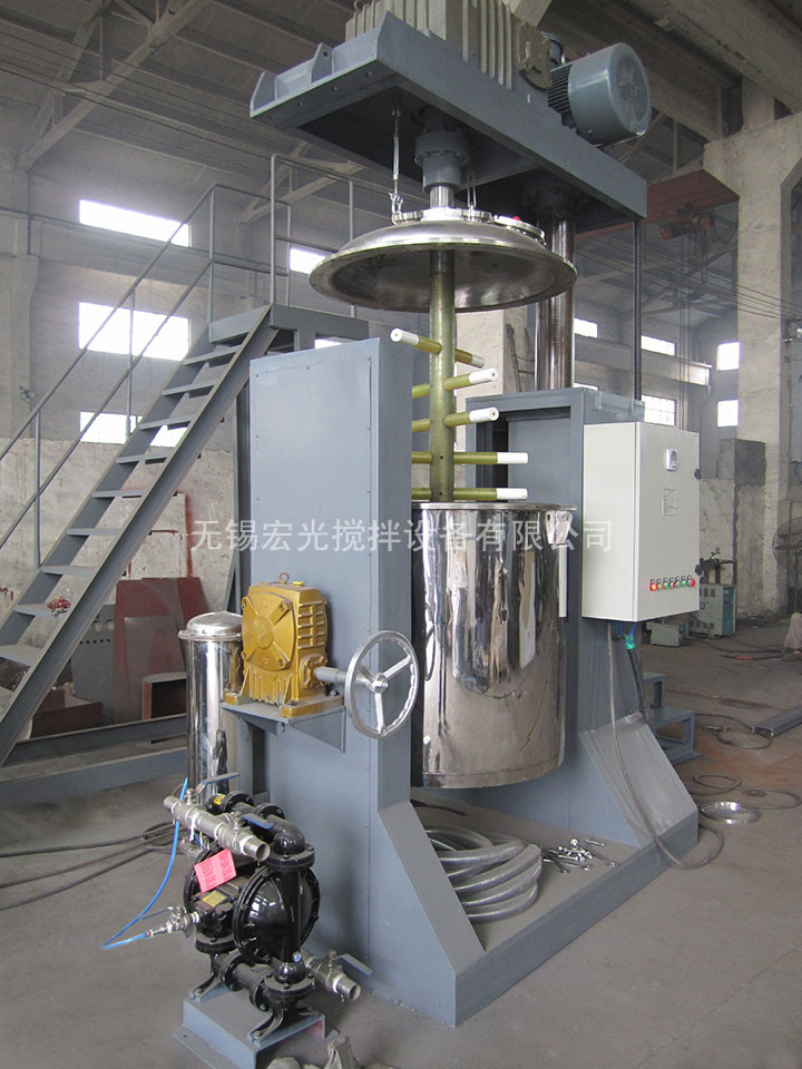 目前,現有的立式攪拌球磨機,主要包括攪拌軸、攪拌棒、機架、電機、減速機、球磨桶等。由于機架為整體式焊接工件,所以造成用戶使用過程中的諸多不便,而本設備為分體式結構,可電動升降、球磨桶翻轉采用渦輪蝸桿結構,操作簡單,省時省工,維修、維護方便快捷。